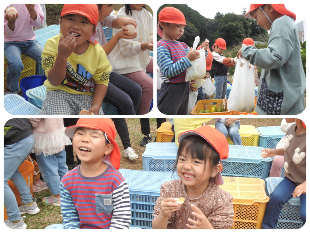 収穫後はとったみかんやお弁当を一緒に食べたり、レクレーションをして楽しみました🎶